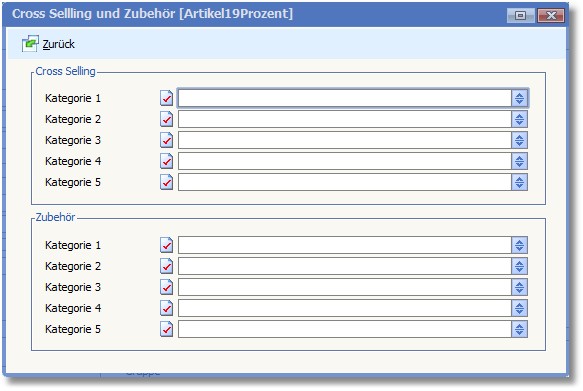 Artikelstamm > Artikel bearbeiten > Menü "Bearbeiten > Optionen/Parameter > Cross-Selling & Zubehör"