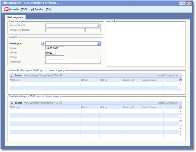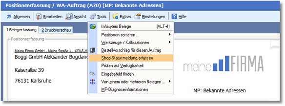 Warenwirtschaft > Verkaufsbelege > Shopbestellung (WA-Auftrag) > Tools > Shop-Statusmeldung erfassen