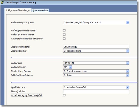 Aktivieren Sie diese Option, wenn die Parameter (Karteikarte Parameter) für die Datenarchvierung in einer Textdatei gespeichert werden sollen.