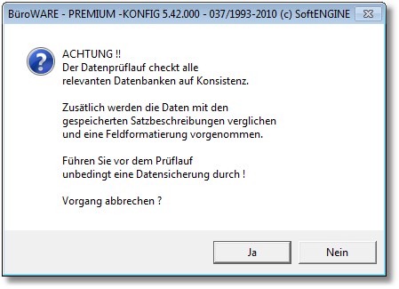 Sie können den Vorgang mit <Ja> abbrechen, um zuvor die notwendige Datensicherung durchführen zu können.