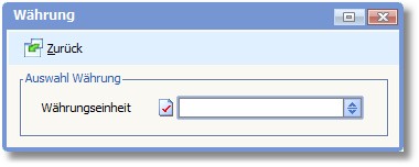 Tragen Sie hier den gewünschten Fremdwährungsschlüssel ein. Eine Auswahl der verfügbaren Fremdwährungen können Sie durch einen Klick auf die Pfeiltaste oder über die Funktionstaste [F5] aufrufen. Das Programm zeigt alle im Firmenstamm angelegten Währungseinheiten. Wählen Sie eine Währungseinheit aus und übernehmen Sie den 2-stelligen Schlüssel in das Feld.