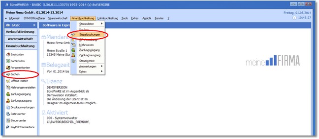 1. Öffnen Sie die Stapelverwaltung über den Hauptmenüpunkt "Finanzbuchhaltung > Stapelbuchungen".