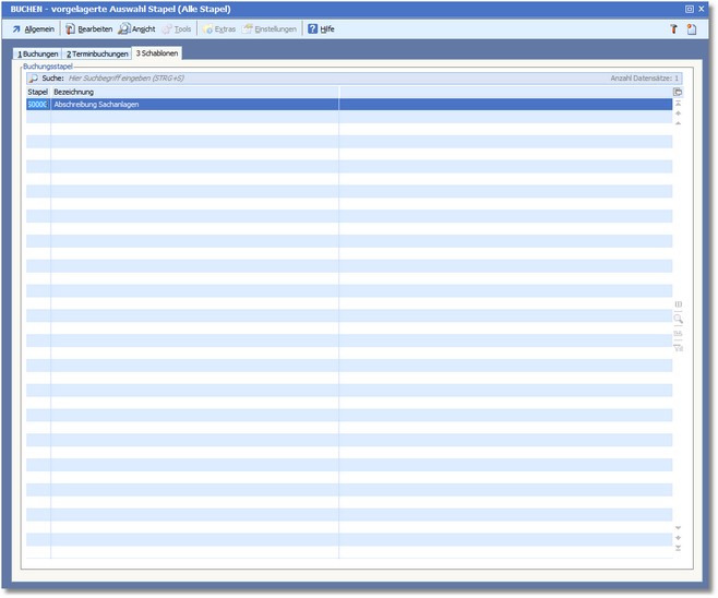 << Hier KLicken um eine Inhaltsübersicht anzuzeigen >> Navigation: Finanzbuchhaltung > Stapelbuchungen > Die Karteikarte "Schablonen" |