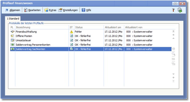 Prüflauf Finanzbuchhaltung