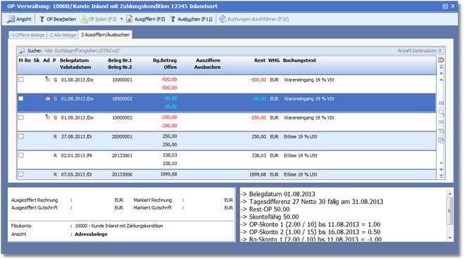 << Hier KLicken um eine Inhaltsübersicht anzuzeigen >> Navigation: Finanzbuchhaltung > OP-Verwaltung > Offene Posten bearbeiten > Adressbezogene OP-Verwaltung > Offene Posten ausziffern > Adressbeziehungen miteinander ausziffern |