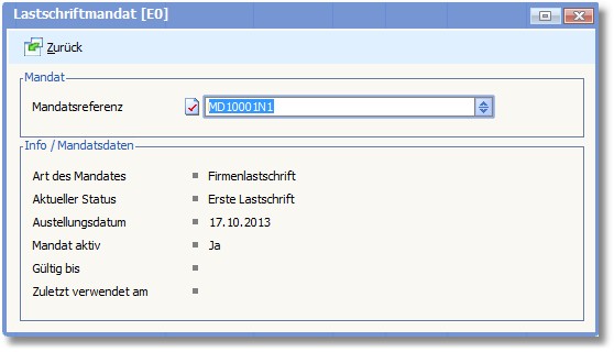 << Hier KLicken um eine Inhaltsübersicht anzuzeigen >> Navigation: Finanzbuchhaltung > Zahlungsverkehr > Zahlungseingang > Manuelle Zahlungseinzüge > Positionserfassung Zahlungseingang > Positionserfassung Zahlungseingang - Menü > Lastschriftmandat |