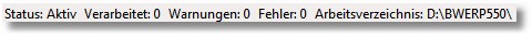 In der Statusleiste wird angezeigt, ob die Powerbridge aktuell aktiv ist, wie viele Datensätze verarbeitet wurden und wie viele Fehler bzw. Warnungen aufgetreten sind. Des Weiteren wird permanent das aktuelle Arbeitsverzeichnis angezeigt.
