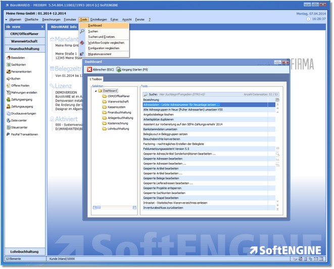 Dieser Assistent unterstützt sie bei der Umsetzung auf den SEPA-Zahlungsverkehr und ist über das Dashboard aufzurufen.