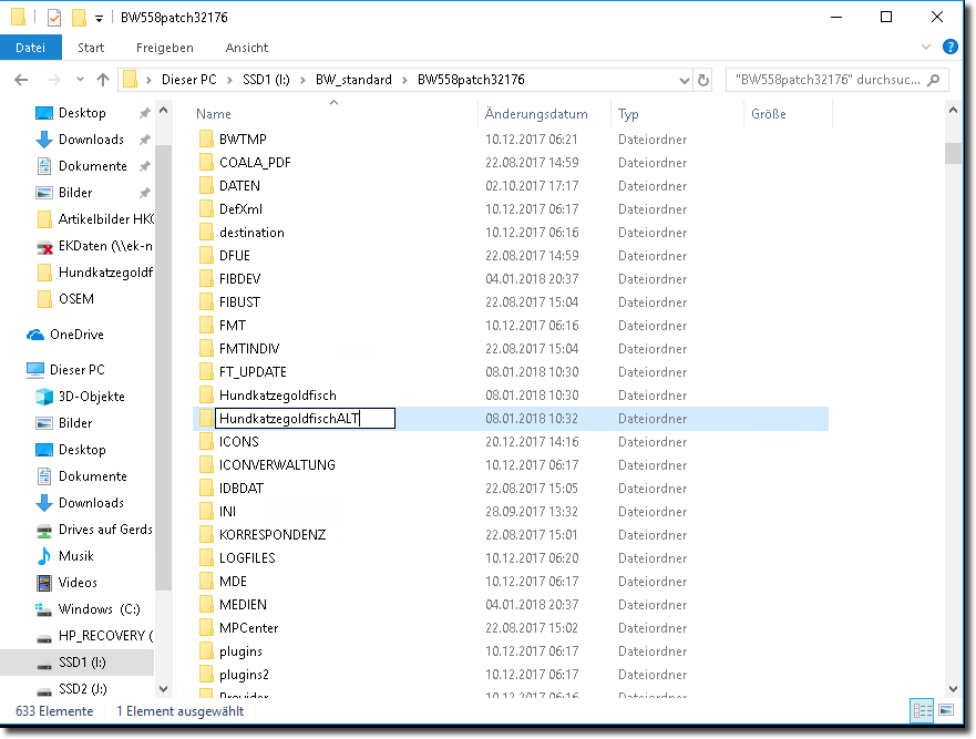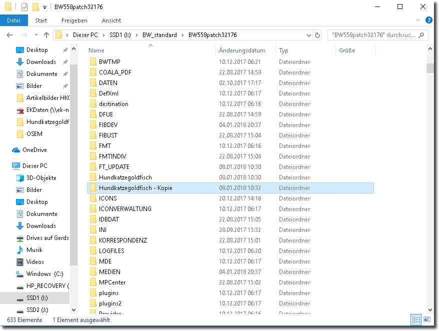 Kopieren Sie das komplette Datenverzeichnis (Kopieren + Einfügen) und benennen Sie dieses um.
