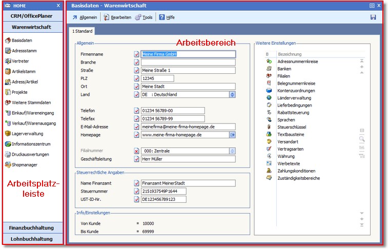 << Hier KLicken um eine Inhaltsübersicht anzuzeigen >> Navigation: Erste Schritte > Arbeiten mit BüroWARE > Der Arbeitsplatz |