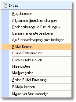 1. Wählen Sie in der Menüleiste des Mailsystems den Menüpunkt "Extras > E-Mail-Konten".