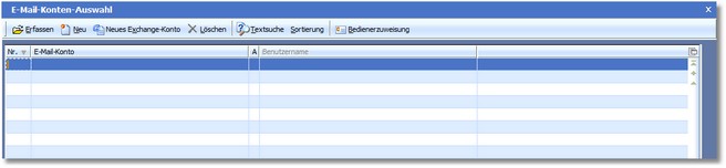 Das Programm öffnet den Tabellendialog „E-Mail-Konten-Auswahl".