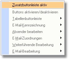 Die Zusatzbuttonleiste beinhaltet das gesamte Mailkontextmenü und die untere Buttonleiste der Mailtabelle.