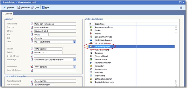 Die Basisdaten der Warenwirtschaft werden geöffnet.