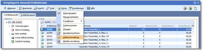 1. Klicken Sie im Artikelstamm auf "Extras > Attributverwaltung".