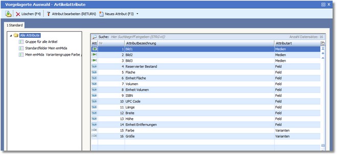 Attribute und Attributgruppen können Sie in der Attributverwaltung anlegen, bearbeiten und löschen.