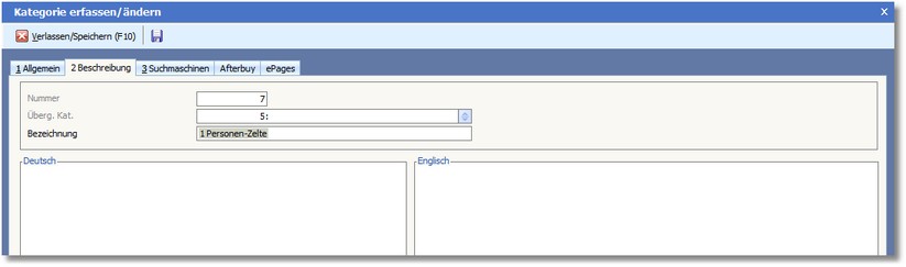 3. In der Karteikarte "Beschreibung" können Sie in den jeweiligen Notizfeldern eine differenzierte Beschreibung in deutsch und englisch hinterlegen: