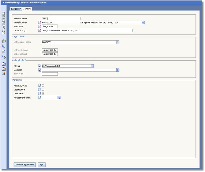Zusätzliche Informationen zur Seriennummer werden in dieser Karteikarte verwaltet.