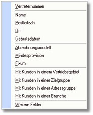 2. Durch Klick auf den Button <Vertreternummer> öffnet sich ein Menü mit vordefinierten Feldern.