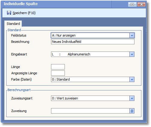 Der Dialog "Individuelle Spalte" wird nun geöffnet.
