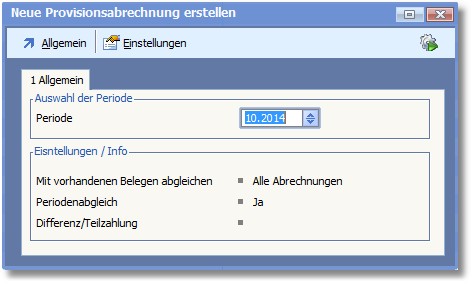 Das Programm öffnet den Dialog " Neue Provisionsabrechnung erstellen".