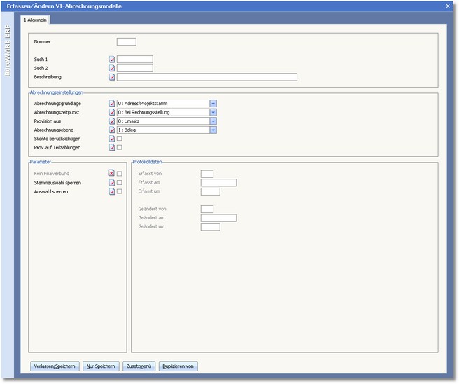 3. Erfassen Sie die Daten in den vorgesehenen Feldern und speichern Sie das neue VT-Abrechnungsmodell mit der Funktionstaste [F10].