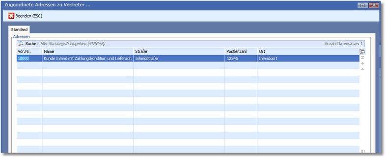 In dieser Tabelle werden alle Adressen angezeigt, bei denen der Vertreter in deren Stammdaten hinterlegt ist.
