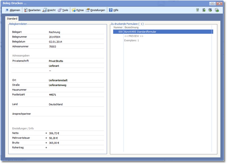 Druckvorgang starten [F9] startet den Belegdruck und schließt den Druckdialog.