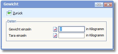 Hier können Sie für die Position abweichende Gewichte hinterlegen: