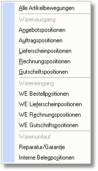 Über diesen Button können Sie die einzelnen Artikelbewegungen auflisten. Zuvor können Sie in einem Pop-Up-Menü auswählen,