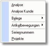 Über den Button <Auswertung> oder mit der Taste [RETURN] öffnet sich ein Popup-Menü mit folgenden Analysemöglichkeiten: