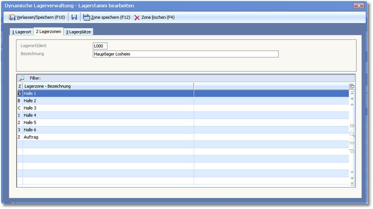 << Hier KLicken um eine Inhaltsübersicht anzuzeigen >> Navigation: Warenwirtschaft > Lagerverwaltung > Lagerstamm > Lager anlegen und ändern > Lagerzonen |