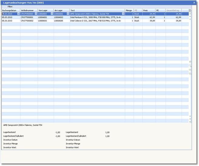 Lagerumbuchungen nehmen Sie immer dann vor, wenn Waren umgelagert worden sind und diese Umlagerung über verschiedene Lager erfolgte.