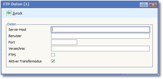 << Hier KLicken um eine Inhaltsübersicht anzuzeigen >> Navigation: Warenwirtschaft > Extras > Shopmanager > Marketplaces > Afterbuy > Marketplace verwalten > FTP-Daten |