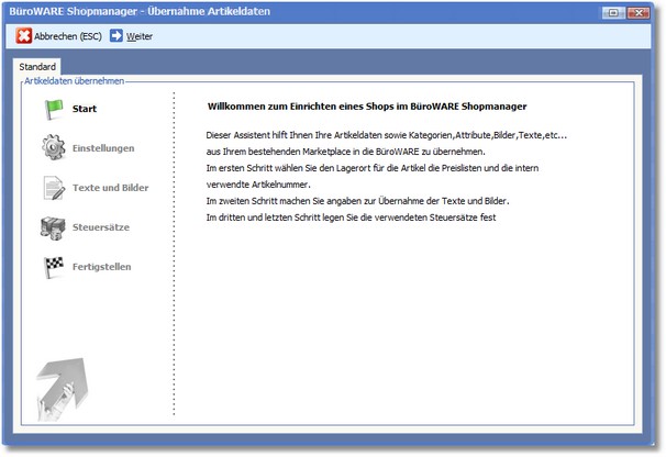 Im nachfolgenden Fenster erhalten Sie eine Übersicht, in der Sie die festgelegten Parameter zur Artikelübernahme aus dem Shop überprüfen können.