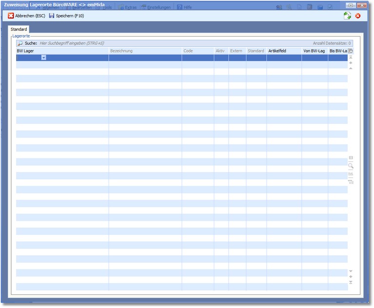 Hier wird die Zuweisung der Lagerorte in der BüroWARE angezeigt und erfasst.