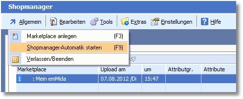 Drücken Sie [F9] oder klicken Sie im Menü des Shopmanagers auf Menü "Allgemein > Shopmanager-Automatik starten".
