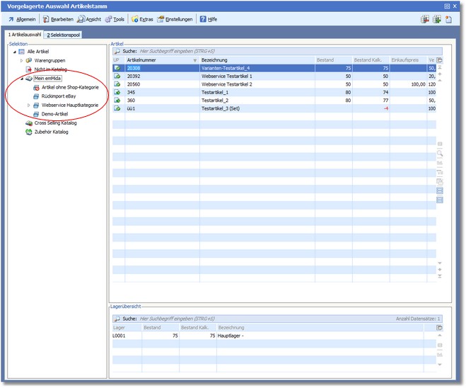 Durch den Einrichtungsassistenten wird der Artikelkatalog angelegt, der im Verzeichnisbaum des Artikelstamms angezeigt wird.