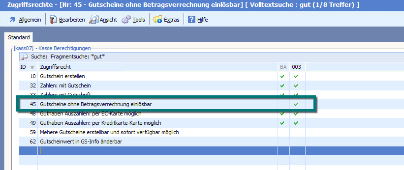 Die Berechtigung zur Nutzung eines Gutscheins ohne Betragsverrechnung ist im Auslieferungszustand der Software deaktiviert.