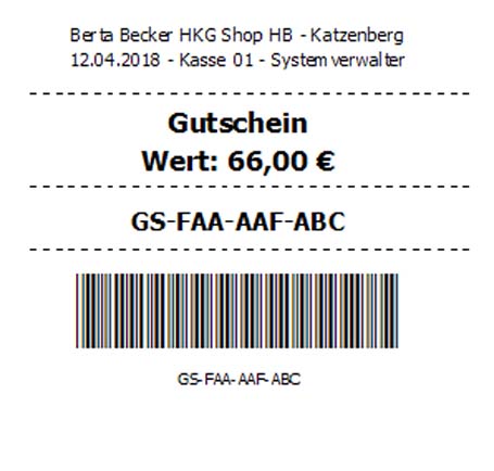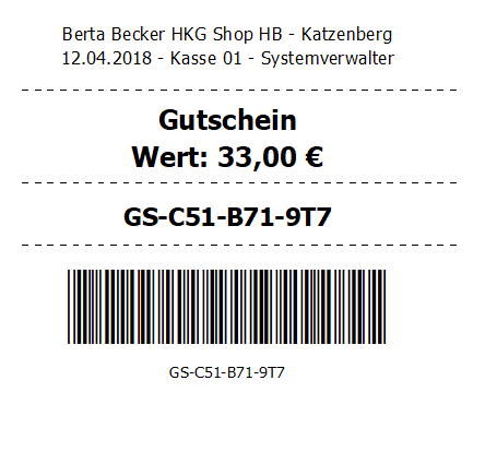 << Hier KLicken um eine Inhaltsübersicht anzuzeigen >> Navigation: Kassensystem > Bedienung der Kasse (Anwenderinformationen) > Spezielle Vorgänge an der Kasse > Gutscheine > Den Gutscheincode anpassen |