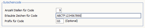 Der Gutscheincode besteht also aus Präfix + 9 Stellen.