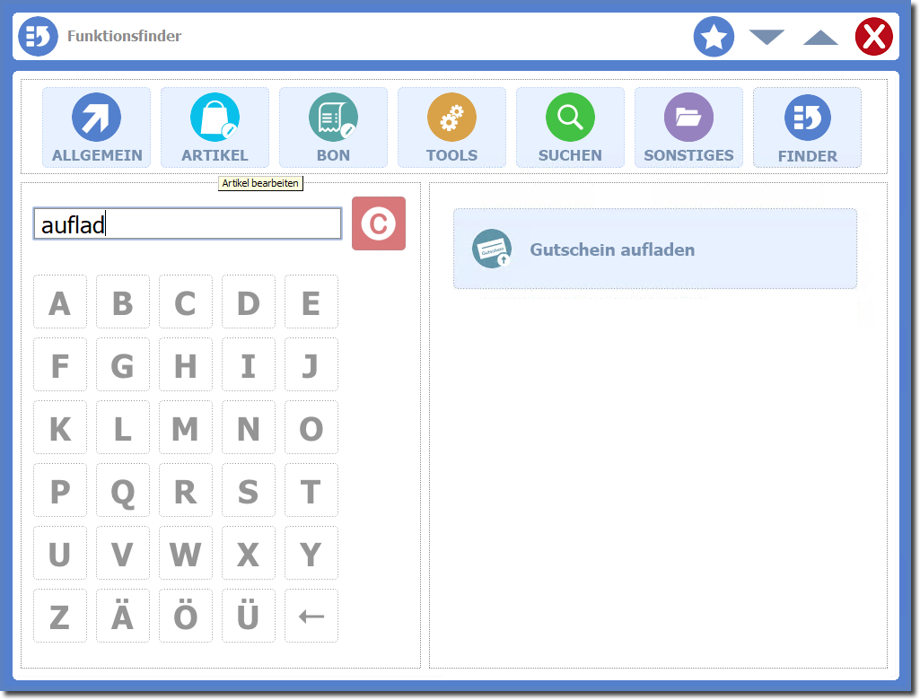 Dazu müssen Sie sich in der Erfassung eines BONs befinden. Wählen Sie zunächst den Finder.