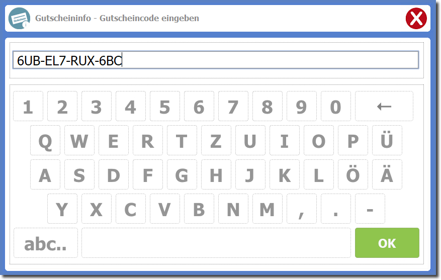 Nach Start der Funktion müssen Sie den Gutscheincode manuell eingeben bzw. können Sie den Gutscheincode natürlich auch scannen.
