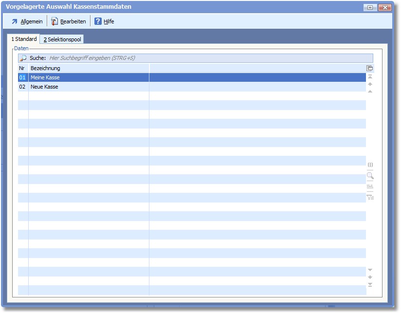 BüroWARE öffnet nun die vorgelagerte Auswahltabelle der Kassenstammdaten.