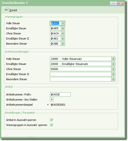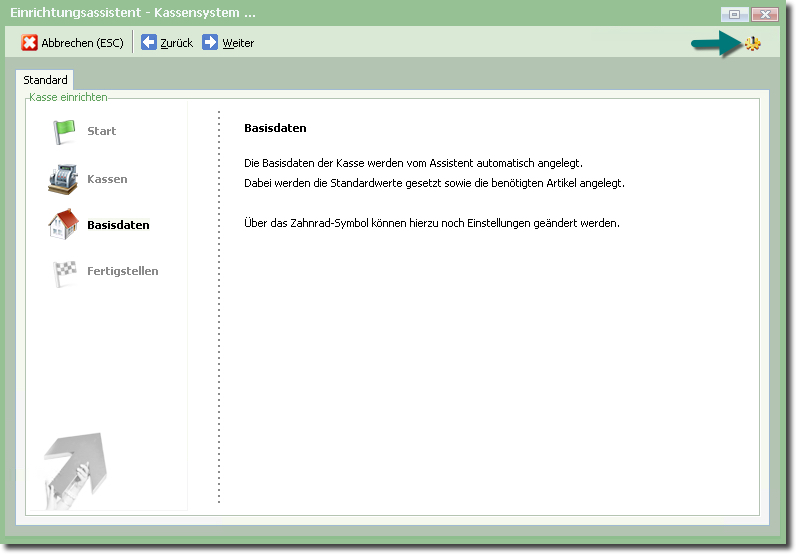 Dieser Assistent führt Sie durch die Kasseneinrichtung und legt ggf. "im Hintergrund" nötige Daten an.