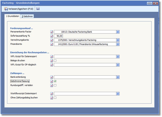 Navigation:  Finanzbuchhaltung > Laufende Vorgänge > OP-Verwaltung > OP-Factoring > Factoring - Grundeinstellungen >