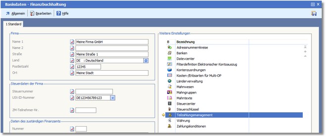 Navigation:  Finanzbuchhaltung > Stammdaten > Basisdaten >