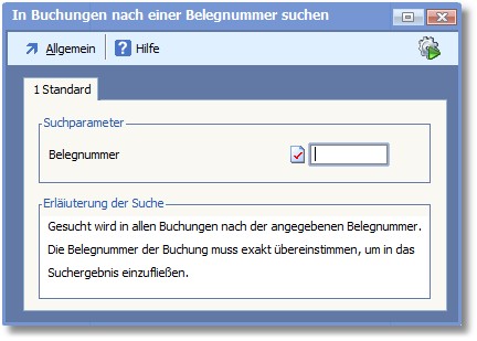 So können Sie in der Buchungsmaske nach einer internen Belegnummer suchen: