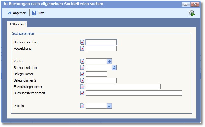 So können Sie in der Buchungsmaske nach einer Fremdbelegnummer suchen: