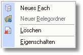 Über das Popup-Menü der rechten Maustaste in der Baumauswahl können Sie Belegfächer und Belegordner anlegen, bearbeiten und löschen.